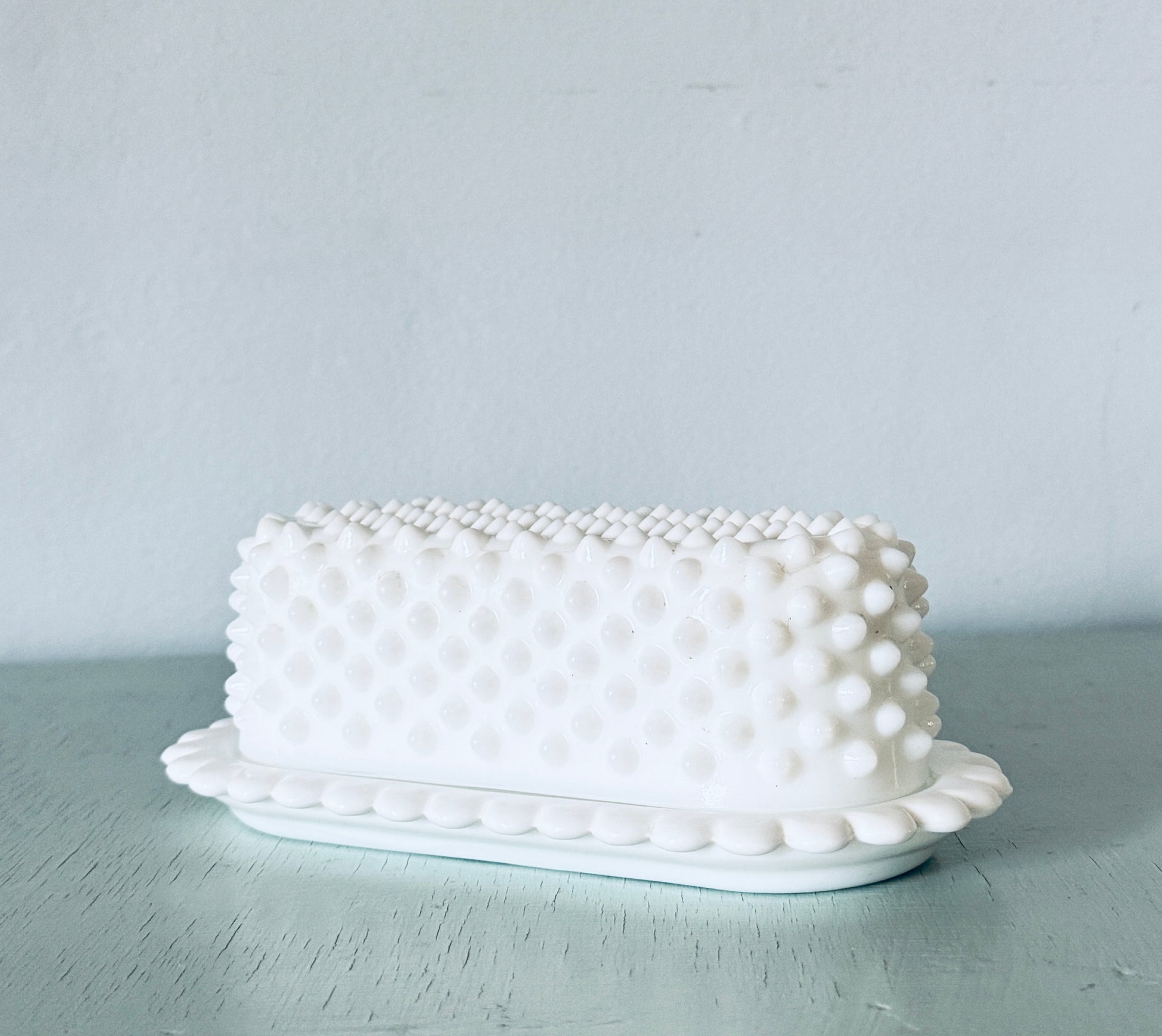 Vintage Fenton Hobnail Milk Glass Butter Dish